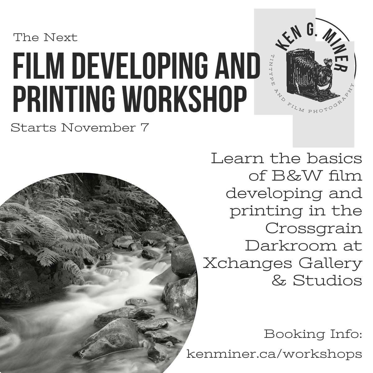 Ken Miner, a studio member at Xchanges, is offering photography workshops this fall. They include: