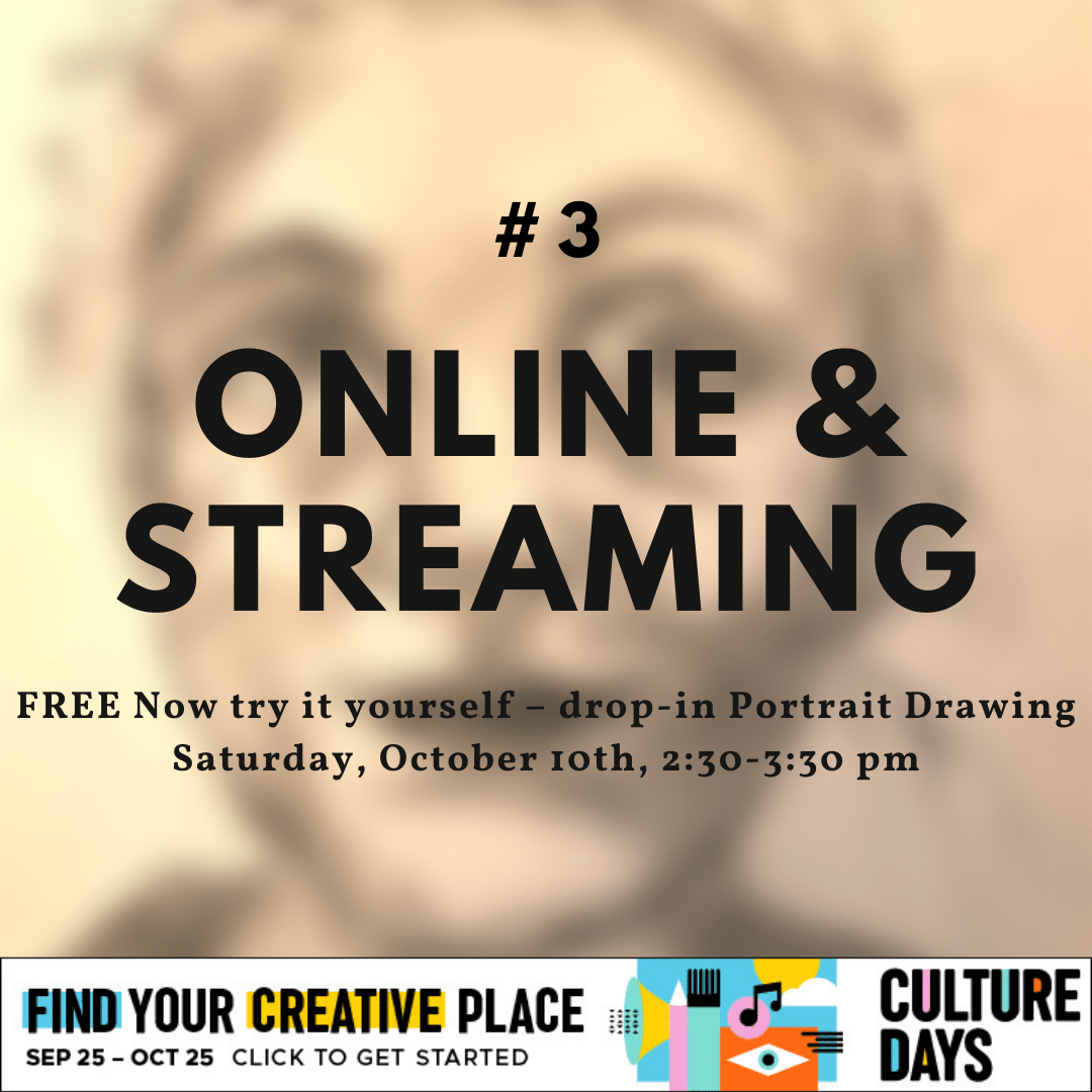 As part of Culture Days 2020 Xchanges is encouraging everyone to try it for yourself and join the online Portrait Drawing session on Saturday, October 10, 2020 at 2:30 pm - 3:30 pm. Particpants are encouraged to first join in the FREE Guided Portrait session with Peter Lobel on Thursday, October 8th from 7-9 pm... Continue Reading →